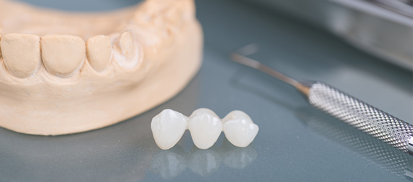 Bridges are like crowns, but are used to restore spaces of one or more missing teeth. The teeth either side of the gap are prepared for crowns in the same way and a bridge is constructed connecting the crowns, therefore improving the appearance and biting function.