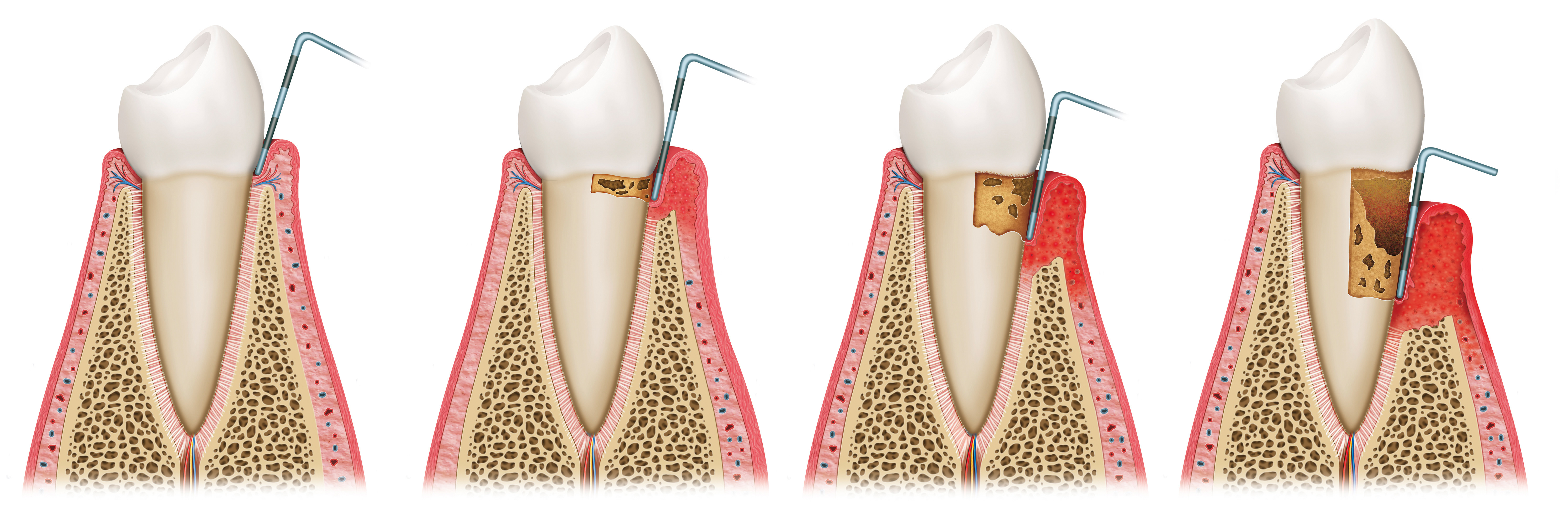 Treatment of periodontal diseases may involve cleaning below the gum line. This involves the use of specialised instruments to remove plaque and calculus from below the gum line and may be performed over several visits.